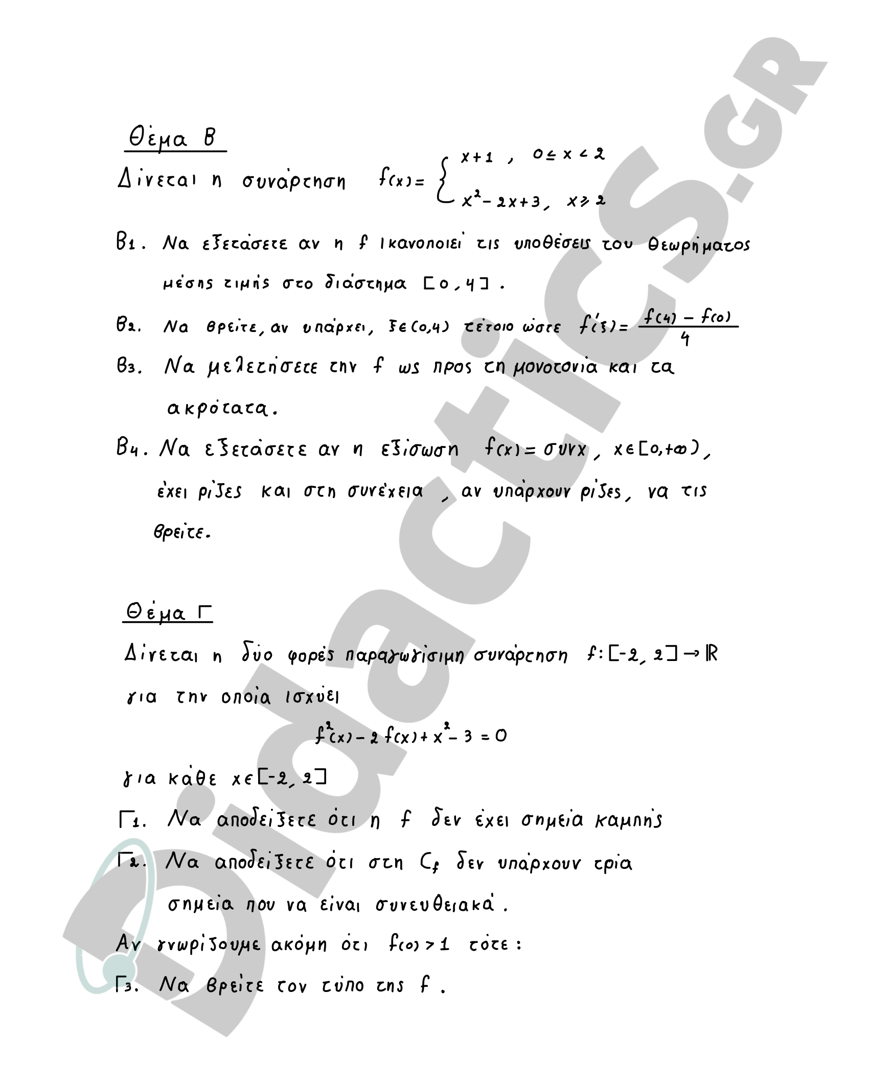 Προτεινόμενα Θέματα για τις Πανελλαδικές Μαθηματικών Γ Λυκείου 2026